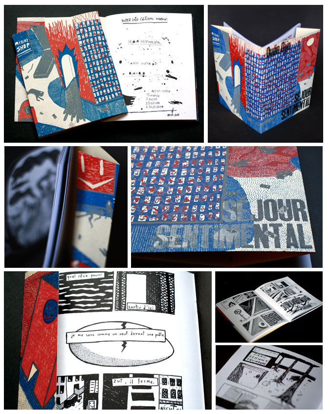 "Séjour Sentimental" Un homme qui parcourt la ville, son regard sur une cité qui pourrait être n’importe laquelle, des rencontres tout à fait banales, une invasion de robots géants… Oudin Ojjo traite ici de déambulations citadines, nocturnes ou non, vécues par ce narrateur invisible et anonyme, qui offre une vision subjective de la ville basée à la fois sur des expériences personnelles et sur des fantasmes, ceux que l’on peut se créer en parcourant de grandes distances à pied. Loin de l’autobiographie autant que de la pure fiction, le regard n’est pas dans la contemplation, il est véritablement impliqué ; et si le titre de cette bande dessinée est volontairement une référence à la chanson « Sentimental Journey » du groupe de new-wave expérimentale américain Pere Ubu, c’est parce la narration saccadée et le graphisme minimal, parfois presque bruitiste, s’y prêtent parfaitement. |