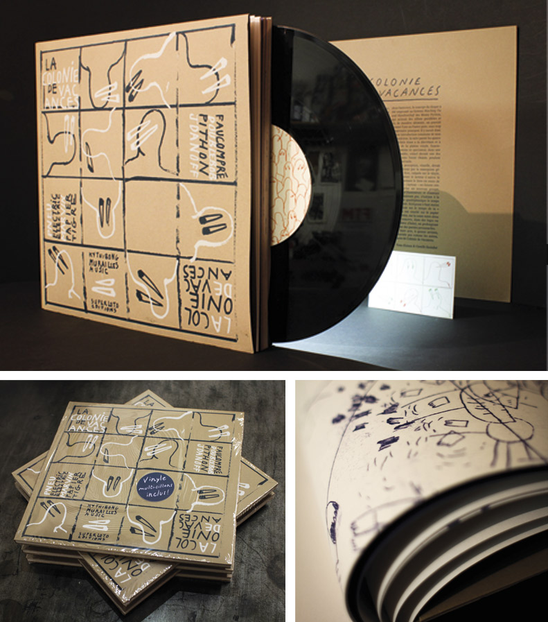"La Colonie de Vacances" Co-éditeurs : Kythibong et Murailles Music. « La Colonie de Vacances » est une expérience de concert hors du commun où le spectateur est balloté entre quatre scènes occupées par quatre groupes français références du rock-noise : Electric Electric, Marvin, Papier Tigre et Pneu. Double Bob, Marion Jdanoff, Quentin Faucompré et Geoffroy Piton se sont appropriés cette expérience en accompagnant les musiciens de « La Colo » en tournée. Le résultat, autant sur le papier que dans les tracés du disque, est une somme d'impressions des quinze artistes lors d’une tournée pas comme les autres, celle d’une vraie colonie de vacances. |